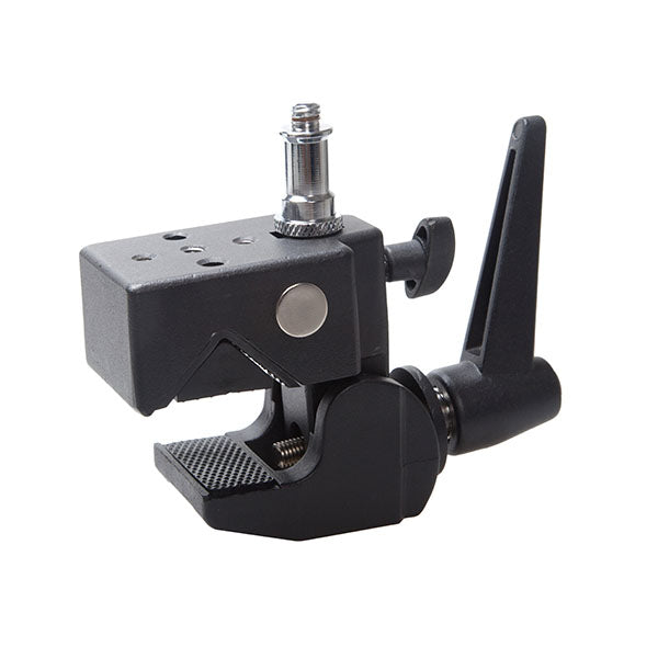 The Phottix Multi Clamp allows for a flash or other accessories to be mounted almost anywhere. The clamp can be locked onto a light stand, or secured to any flat surface with the addition of the included plastic insert. Using the reversible ¼” or 3/8” spigot, an umbrella swivel, trigger, studio light or other accessories are easy to mount.