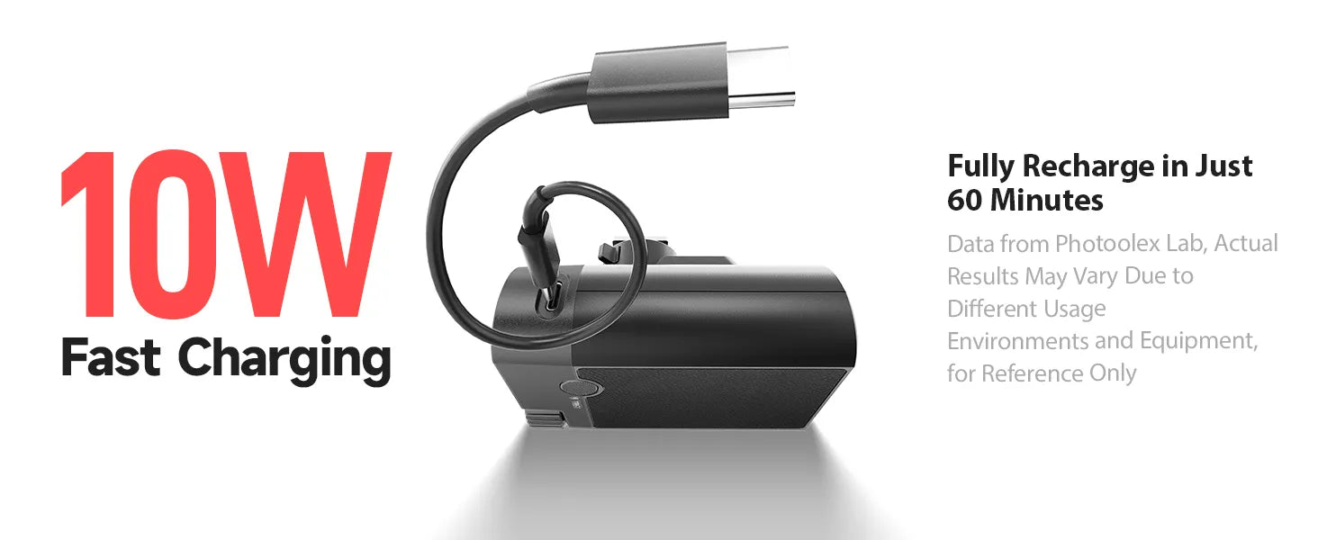 Equipped with a 2000mAh rechargeable lithium battery (7.4Wh) and real-time battery level display on the screen. Quickly check battery status even when the device is off—just a short press of the top button is all it takes.