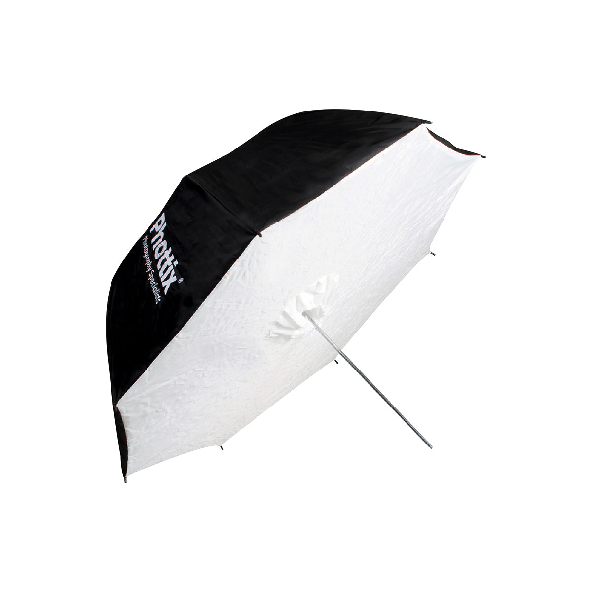 The Phottix Essentials White Photo Studio Diffuser Umbrella is a white shoot through style umbrella. A hot shoe flash or studio light can shoot through the umbrella to soften light. It can also be used as a reflective umbrella.