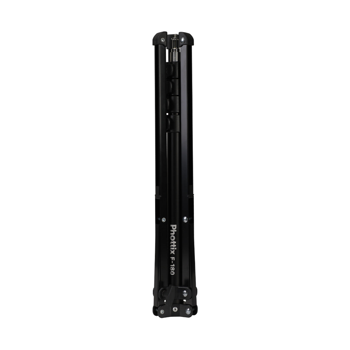 The Phottix F-180 Light Stand (H: 180 cm / 71″) may be the world’s shortest light stand when collapsed, measuring just 46 cm. Its compact size makes it easy to transport between locations and highly adjustable for a variety of lighting situations.