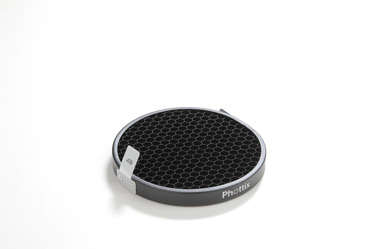 Control your lights better with the Phottix 5″ Honeycomb Grid Set. Compatible with Phottix 5″ Reflector. The grids come in 30, 40, 50, 60 degree versions. Carrying bag included.
