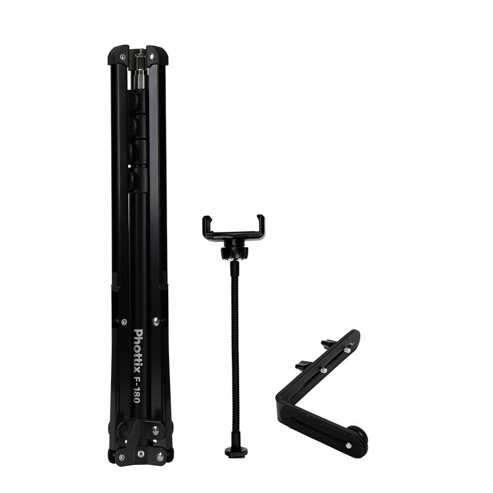 The Phottix Nuada Ring60 includes a Light-weight collapsible light stand and a carry bag for easy travel and on-location setup.