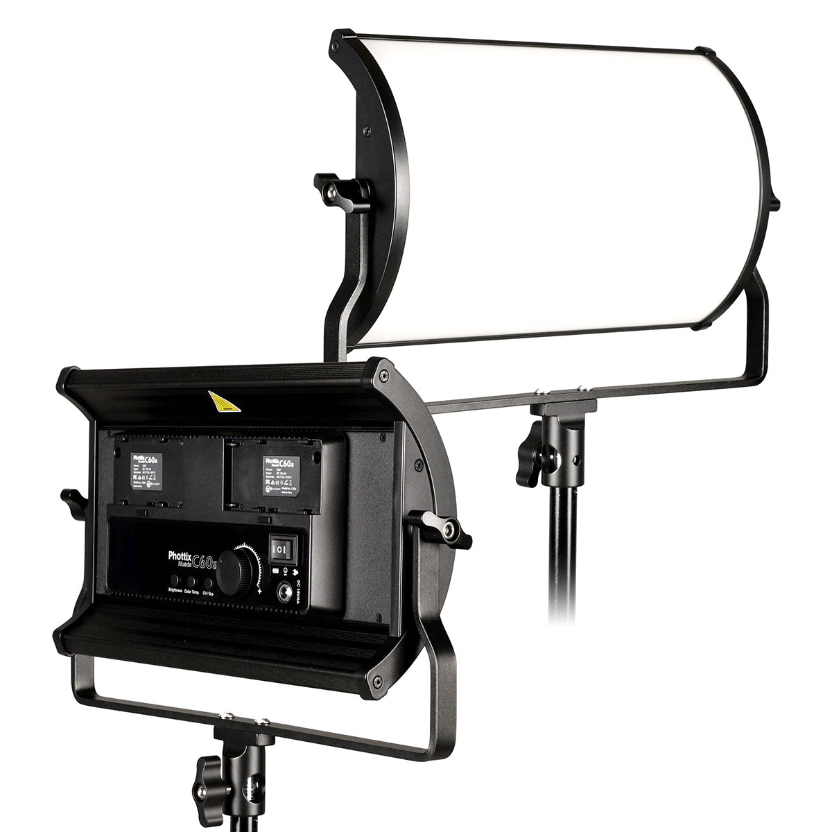 Phottix C60a has a semi-circular shape and an ultra-wide 240° beam angle. It provides 50W of pleasant light through 1280 dual-color (warm and cold) LED bulbs. It can be configured in 3 groups(A/B/C/All) and 40 channels of lighting settings through the smartphone App Bluetooth remote control.